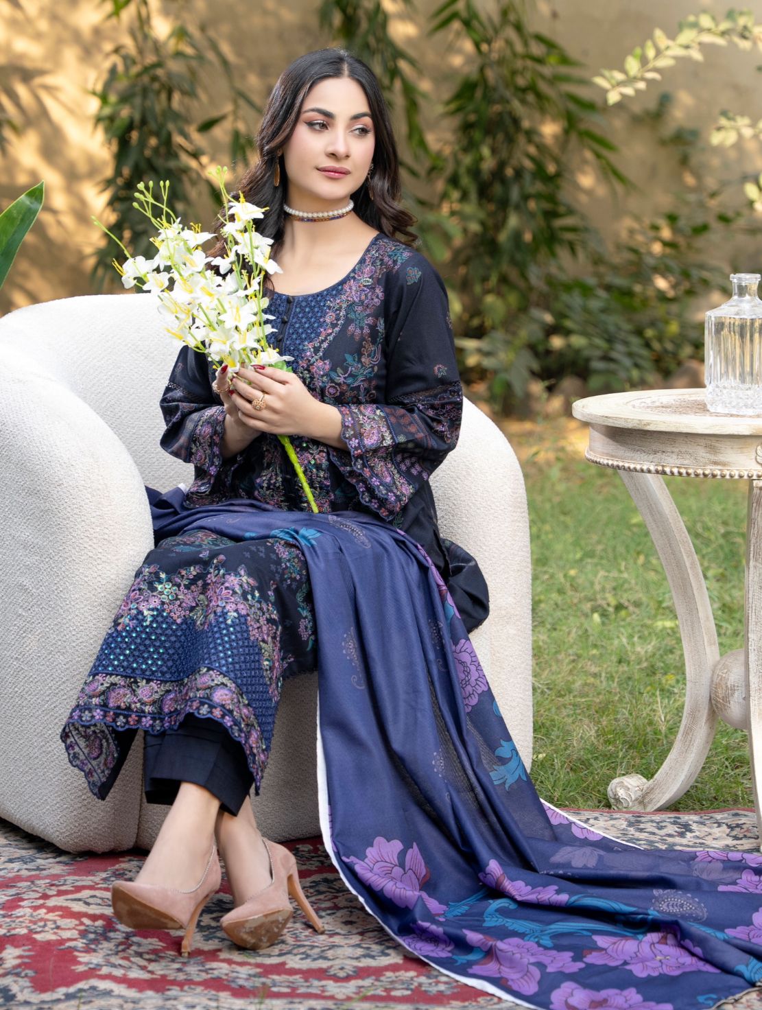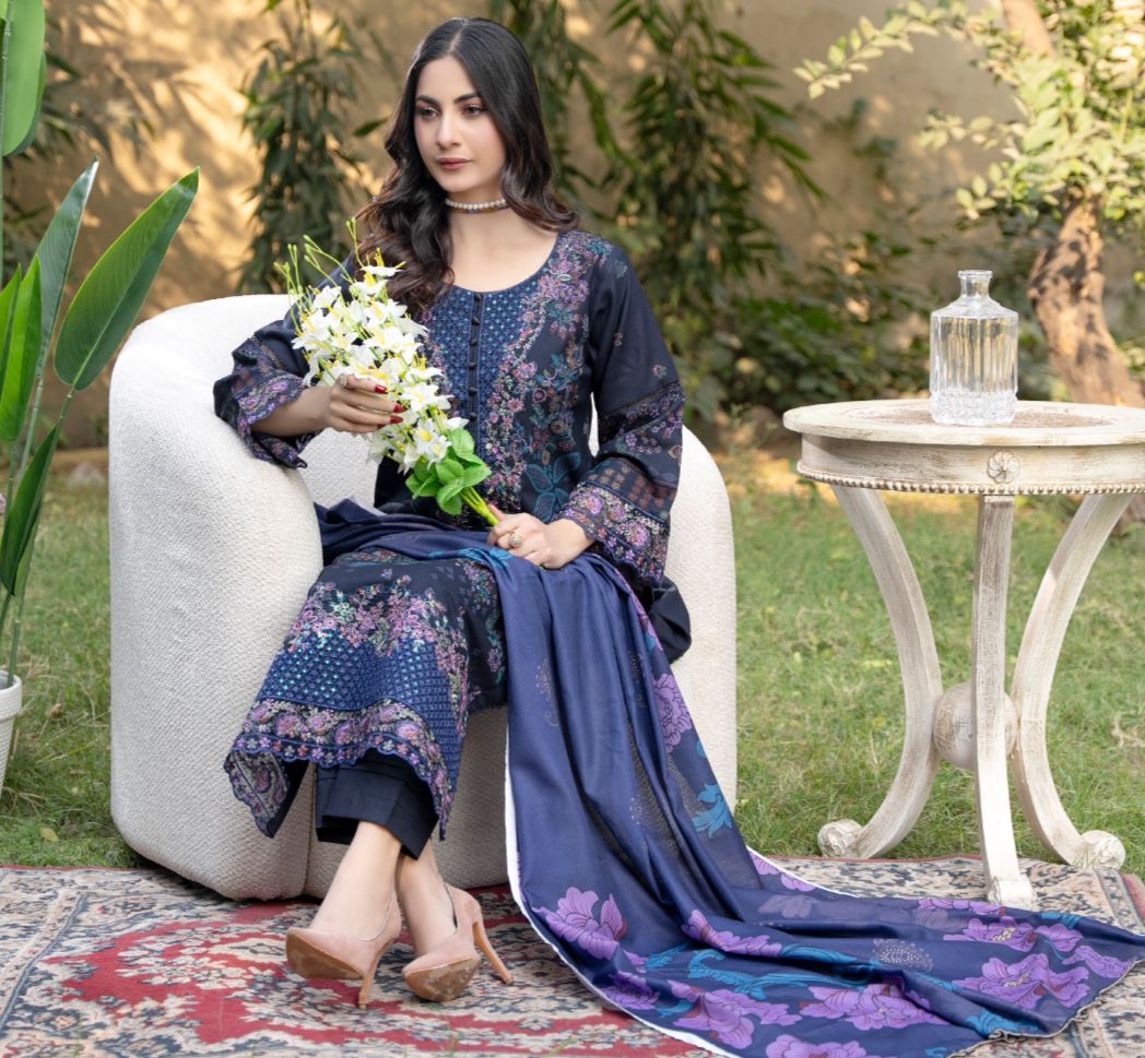 Elevate your ethnic wardrobe with this sophisticated three-piece dhanak suit, crafted from premium quality fabric that balances comfort with elegance. The ensemble features intricate designer embroidery and detailed patchwork throughout, showcasing traditional craftsmanship with contemporary flair. This collection includes a beautifully coordinated shawl that complements the suit perfectly, offering versatility for both formal occasions and festive celebrations. The dhanak material provides a luxurious drape and durability, ensuring your investment pieces remain timeless additions to your collection. Ideal for those who appreciate refined ethnic fashion with artistic detailing.