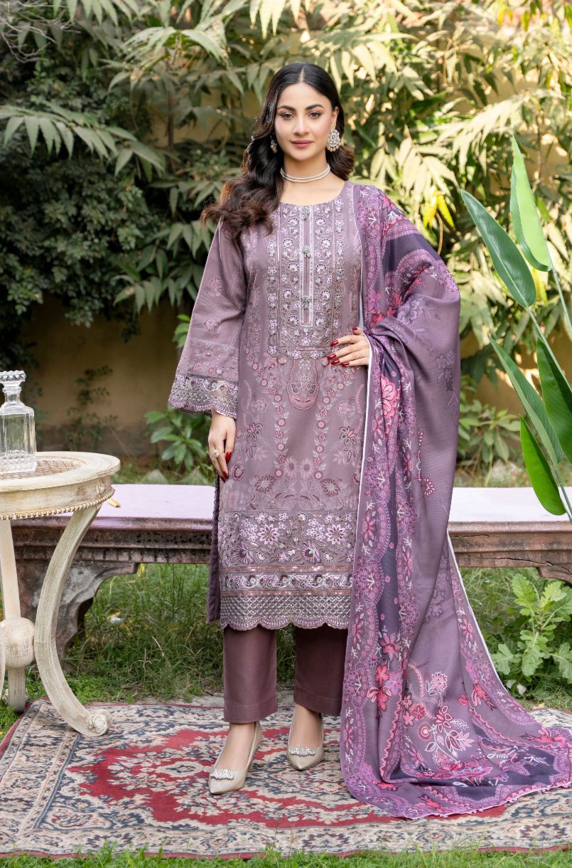 Elevate your ethnic wardrobe with this sophisticated three-piece dhanak suit, crafted from premium quality fabric that balances comfort with elegance. The ensemble features intricate designer embroidery and detailed patchwork throughout, showcasing traditional craftsmanship with contemporary flair. This collection includes a beautifully coordinated shawl that complements the suit perfectly, offering versatility for both formal occasions and festive celebrations. The dhanak material provides a luxurious drape and durability, ensuring your investment pieces remain timeless additions to your collection. Ideal for those who appreciate refined ethnic fashion with artistic detailing.