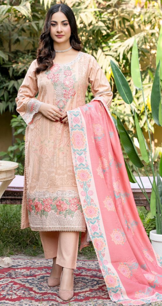 Elevate your ethnic wardrobe with this sophisticated three-piece dhanak suit, crafted from premium quality fabric that balances comfort with elegance. The ensemble features intricate designer embroidery and detailed patchwork throughout, showcasing traditional craftsmanship with contemporary flair. This collection includes a beautifully coordinated shawl that complements the suit perfectly, offering versatility for both formal occasions and festive celebrations. The dhanak material provides a luxurious drape and durability, ensuring your investment pieces remain timeless additions to your collection. Ideal for those who appreciate refined ethnic fashion with artistic detailing.