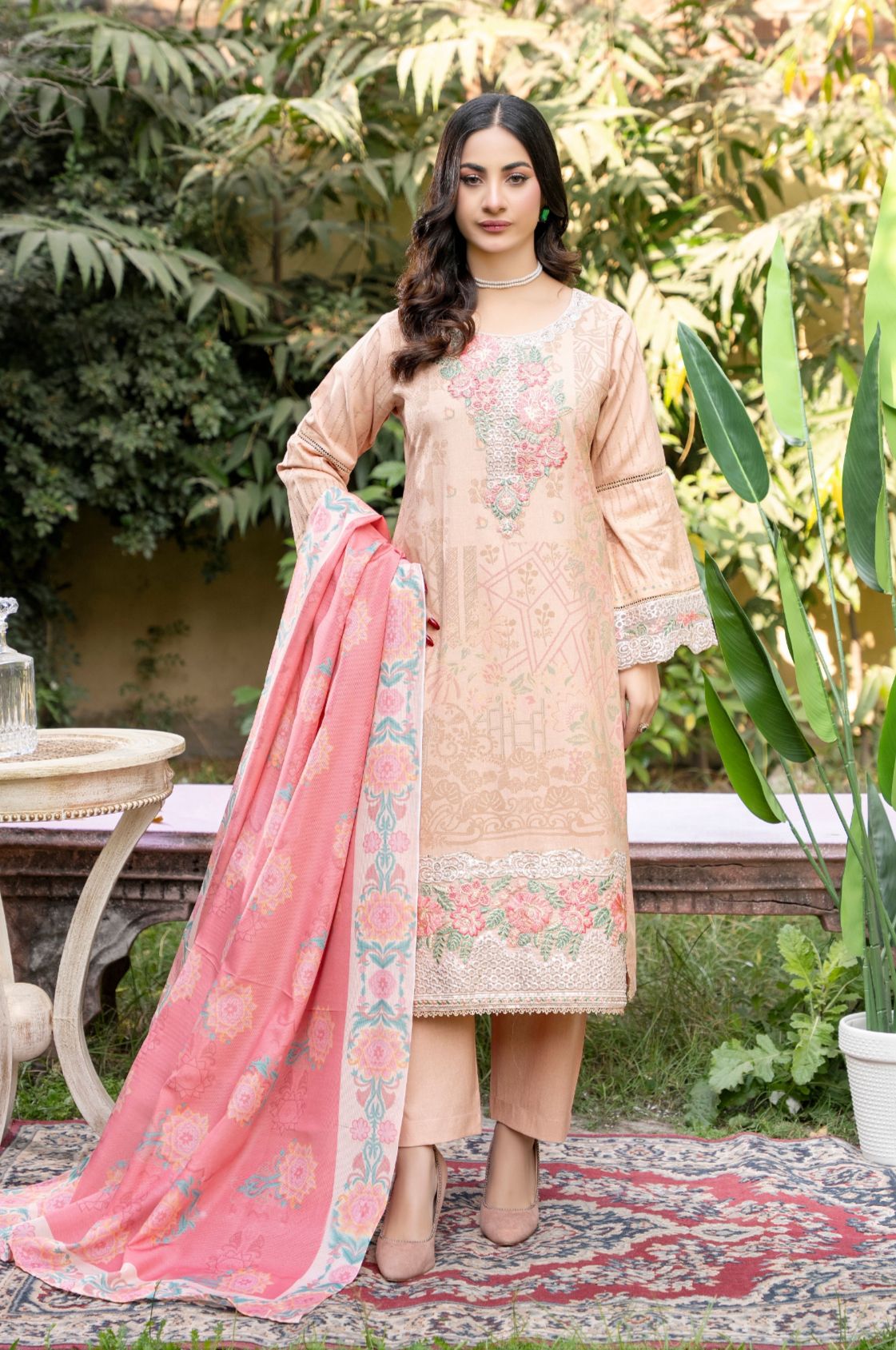 3 PC DESIGNER | EMBROIDERED PATCH WORK DHANAK | WITH SHAWL SUIT