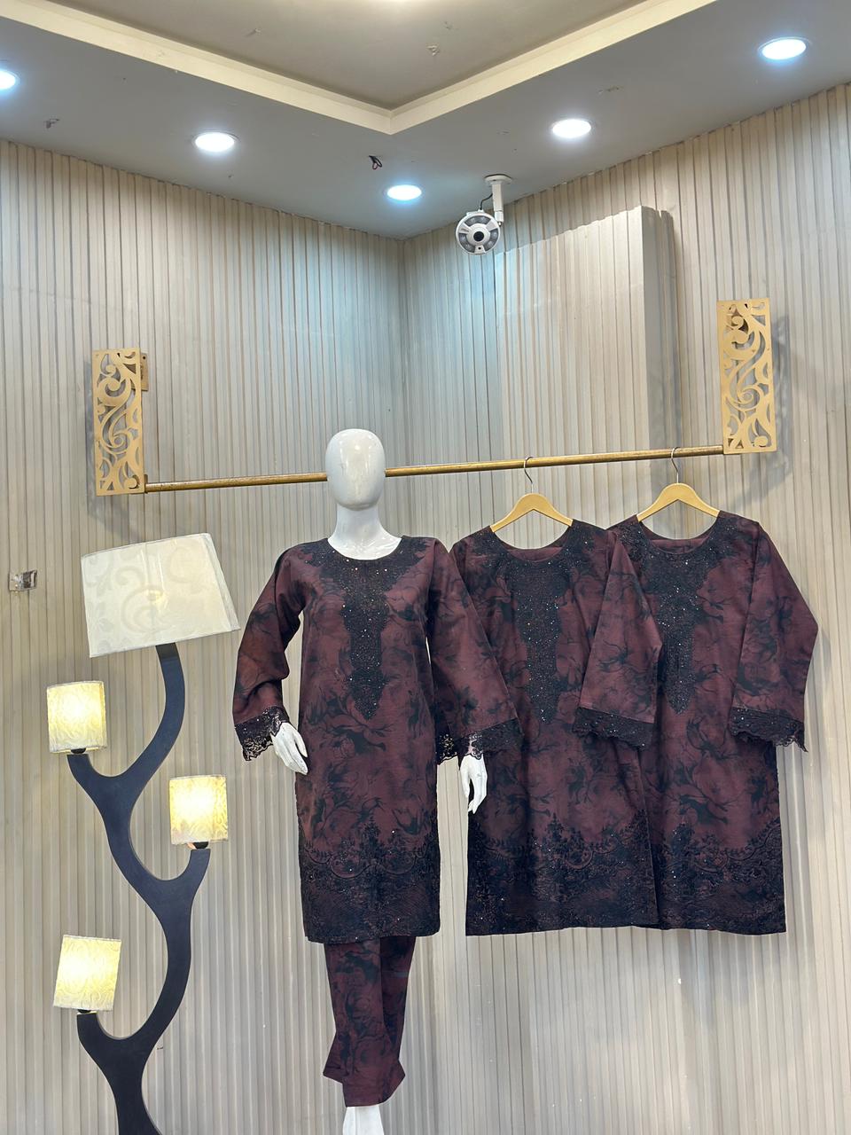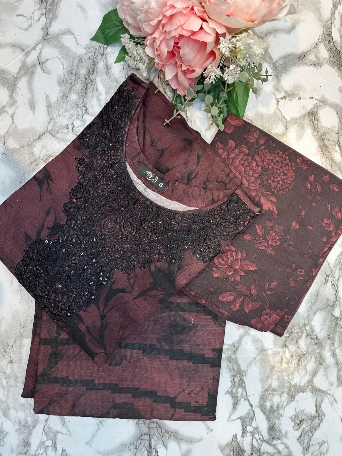 Elevate your wardrobe with this sophisticated three-piece khaddar suit, expertly crafted with intricate embroidered patchwork detailing. The ensemble features a beautifully tailored kurta adorned with precision embroidery, complemented by coordinating trousers and a luxurious shawl. Khaddar's renowned durability and natural breathability make it ideal for year-round wear, whilst the designer patchwork elevates this piece beyond everyday wear. Perfect for festive occasions, formal gatherings, or refined casual settings. Each element is thoughtfully constructed to deliver both comfort and timeless elegance.