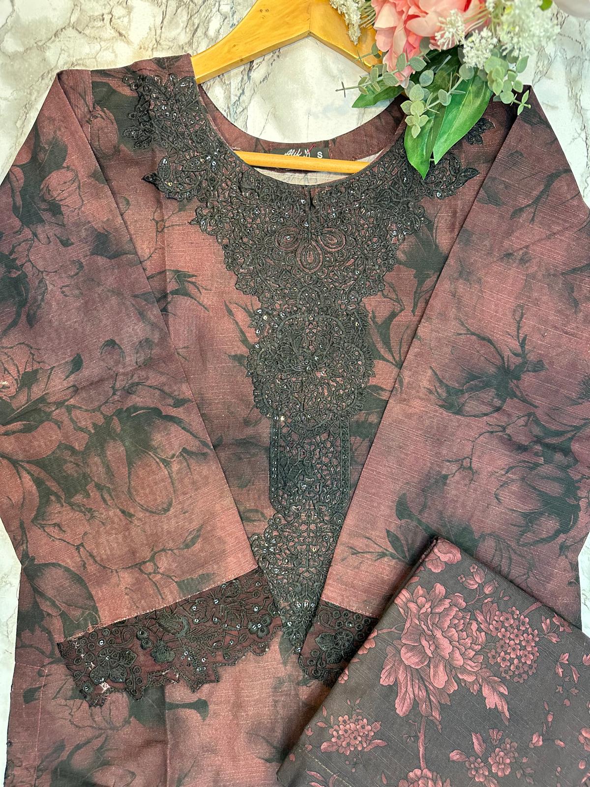 3 PC DESIGNER | EMBROIDERED PATCH WORK KHADDAR | WITH SHAWL SUIT