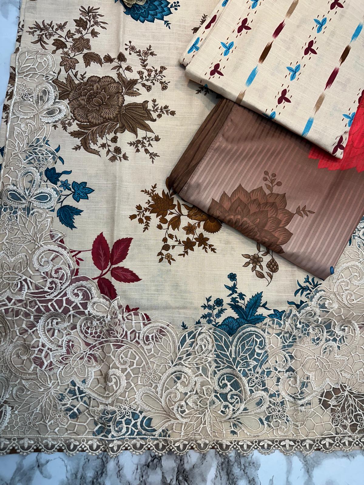 3 PC DESIGNER | EMBROIDERED PATCH WORK KHADDAR | WITH SHAWL SUIT