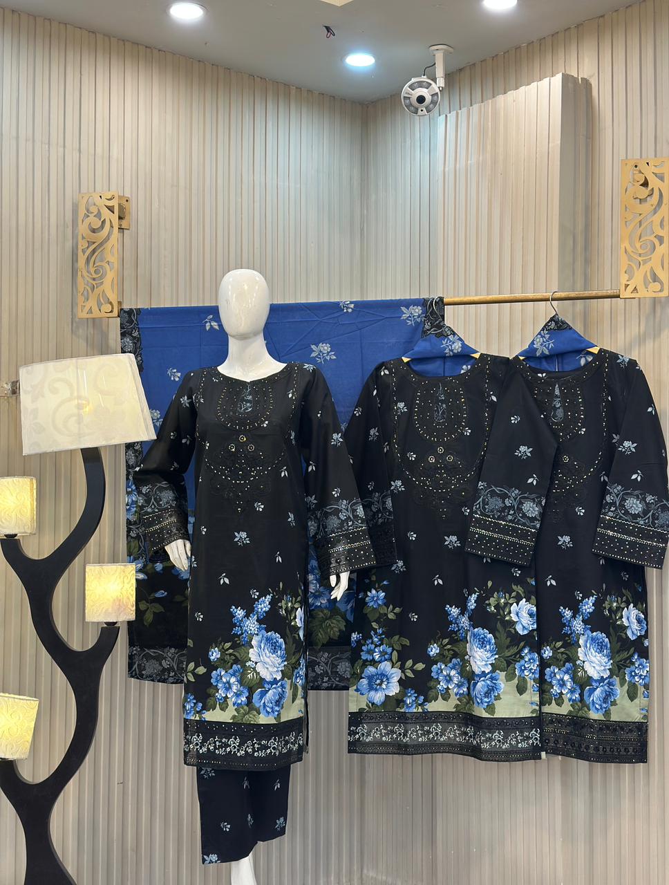 Elevate your wardrobe with this sophisticated three-piece khaddar suit, expertly crafted with intricate embroidered patchwork detailing. The ensemble features a beautifully tailored kurta adorned with precision embroidery, complemented by coordinating trousers and a luxurious shawl. Khaddar's renowned durability and natural breathability make it ideal for year-round wear, whilst the designer patchwork elevates this piece beyond everyday wear. Perfect for festive occasions, formal gatherings, or refined casual settings. Each element is thoughtfully constructed to deliver both comfort and timeless elegance.