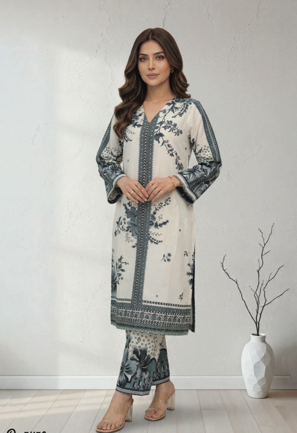 D-5450 GULSAR 2 PIECE STITCHED STAPLE LINEN COLLECTION BY TAWAKKAL