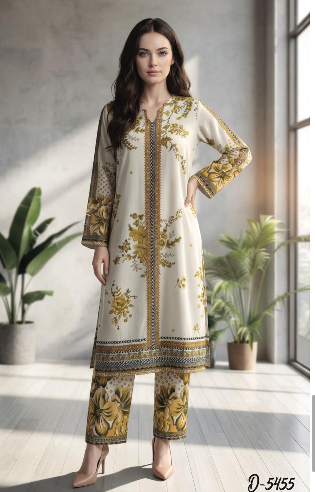 D-5455 GULSAR 2 PIECE STITCHED STAPLE LINEN COLLECTION BY TAWAKKAL