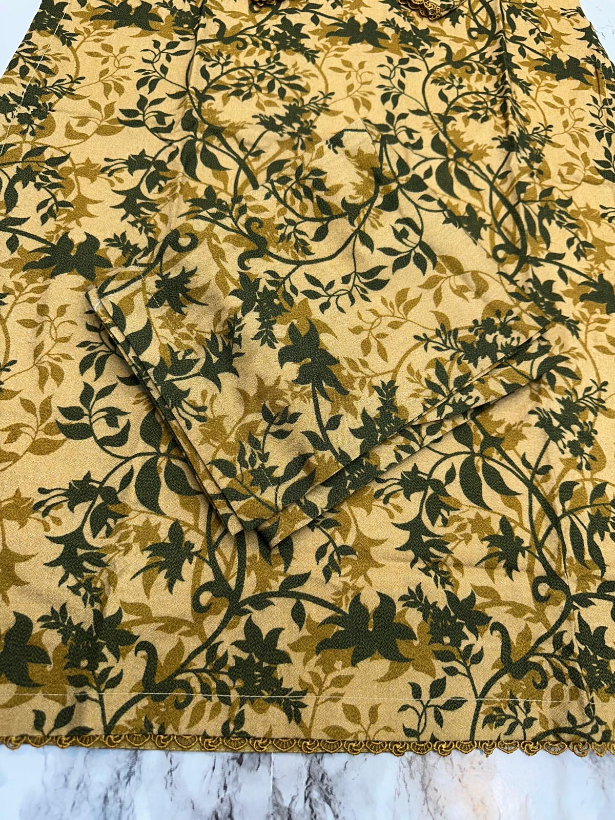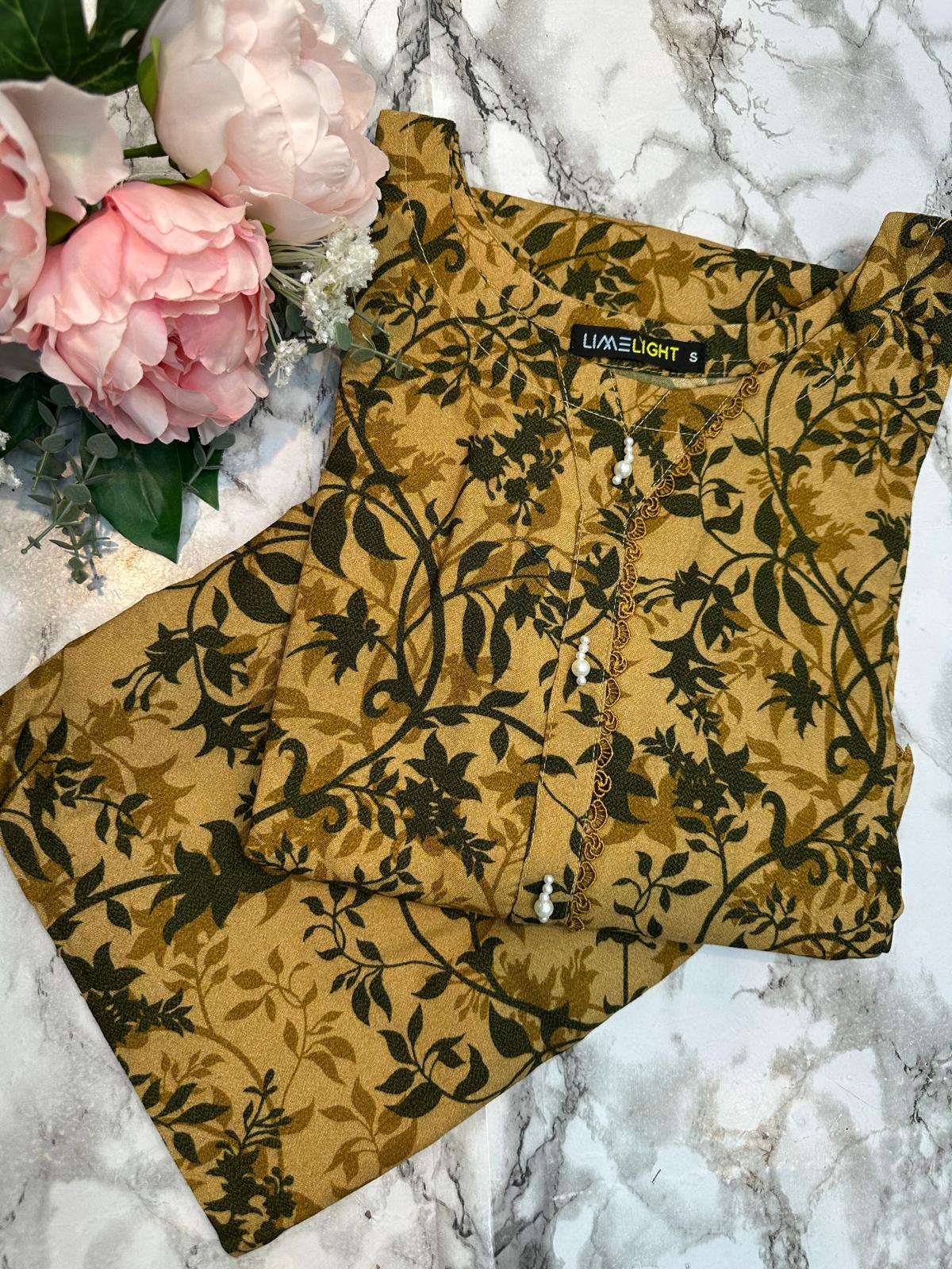 Floral Printed Dhanak Suit - Trouser 2 Pc Set with Nicely attached laces and sewing.