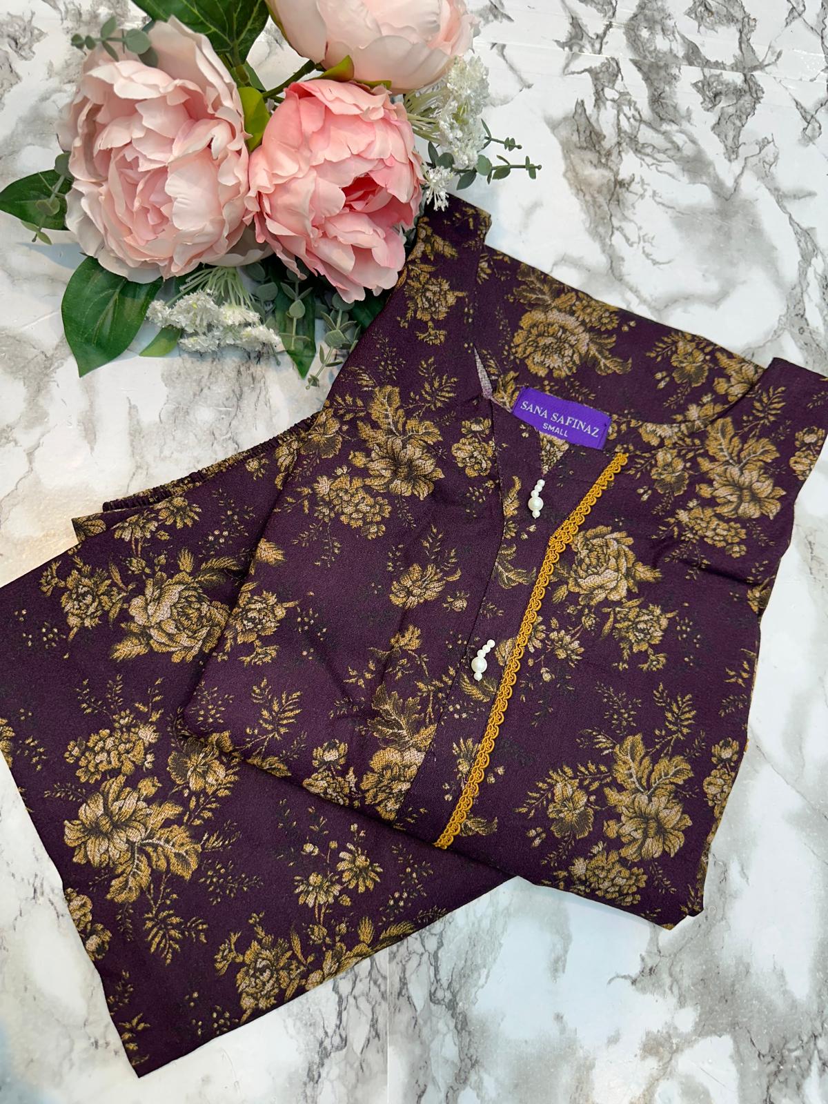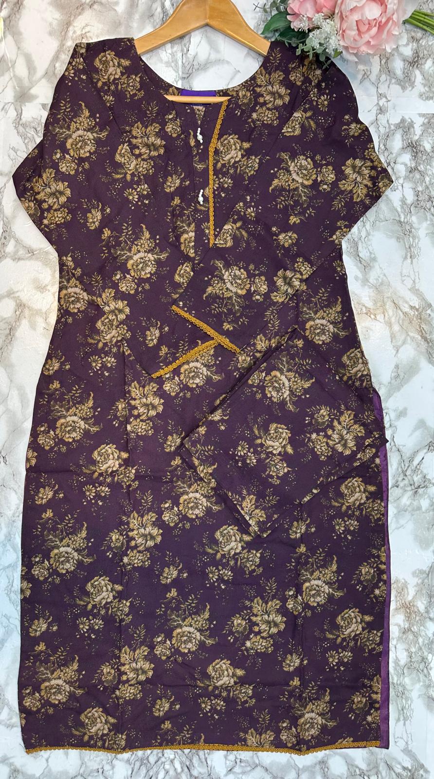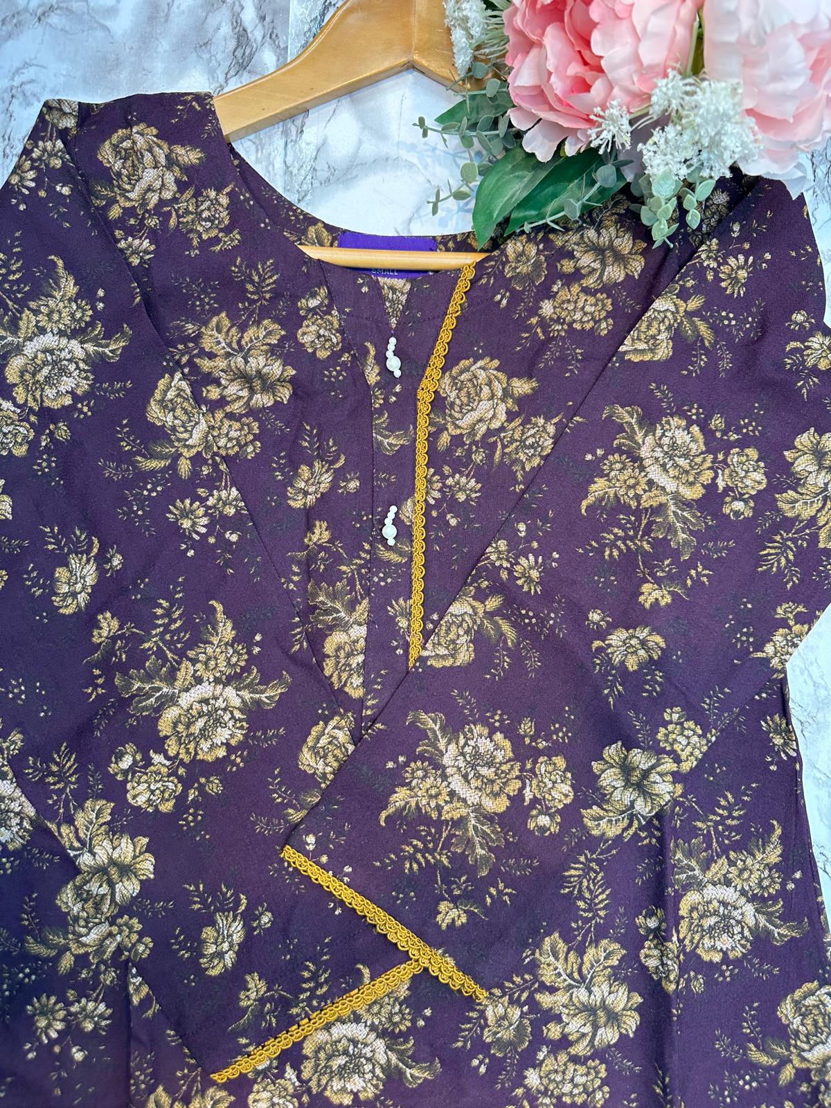 Floral Printed Dhanak Suit - Trouser 2 Pc Set with Nicely attached laces and sewing.