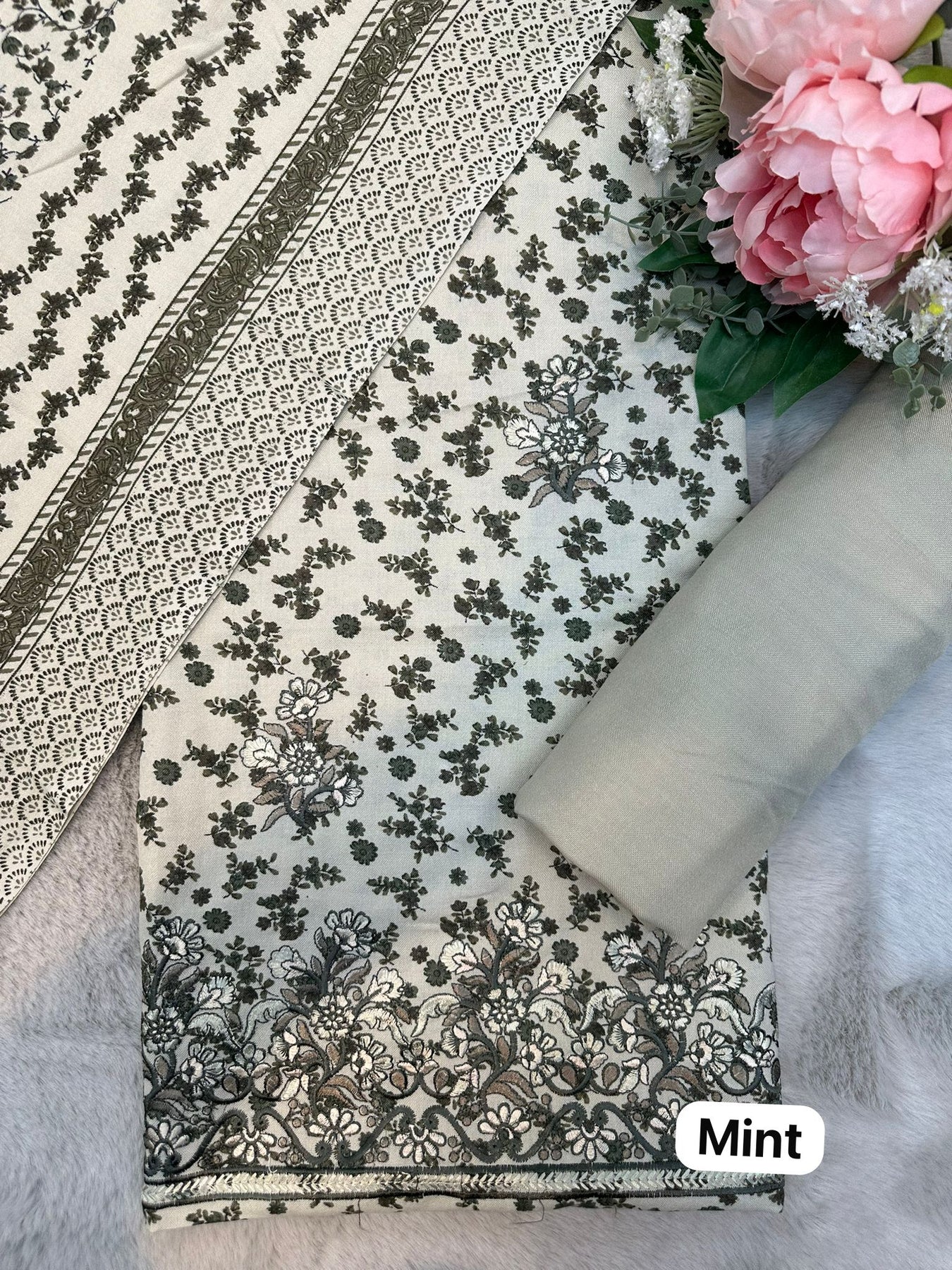 D-1171 Mint Winter Embroidered Unstitched Alpine Suit