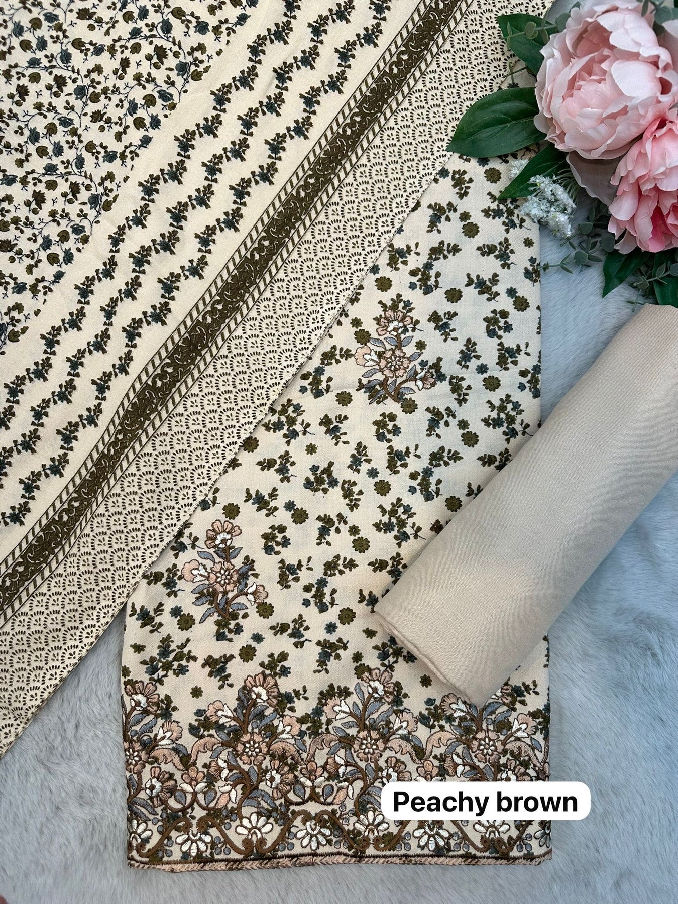 D-1171 Peachy Brown Winter Embroidered Unstitched Alpine Suit