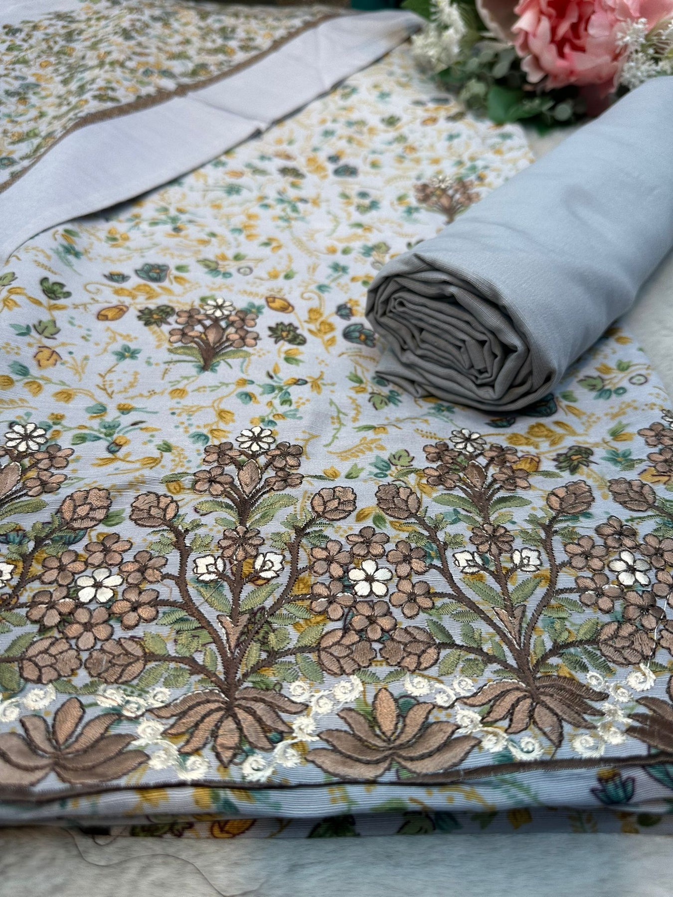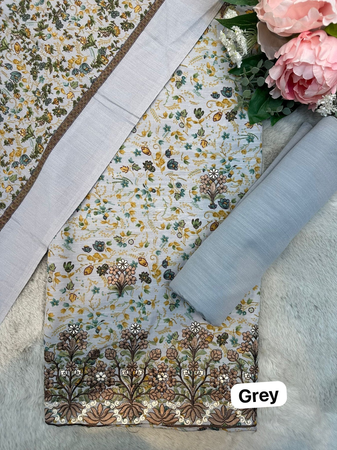 D-549 Gray Winter Embroidered Unstitched Karandi Suit