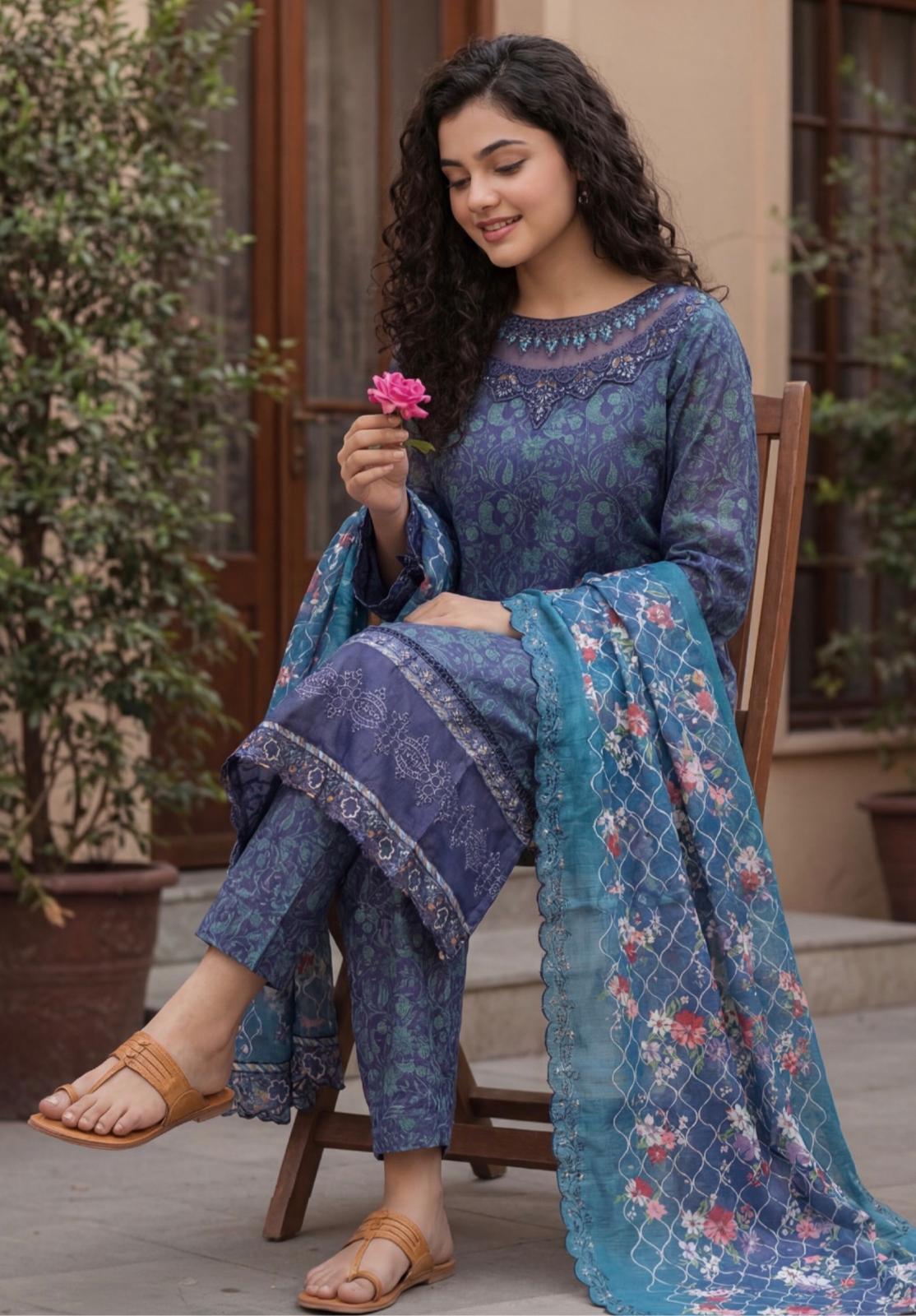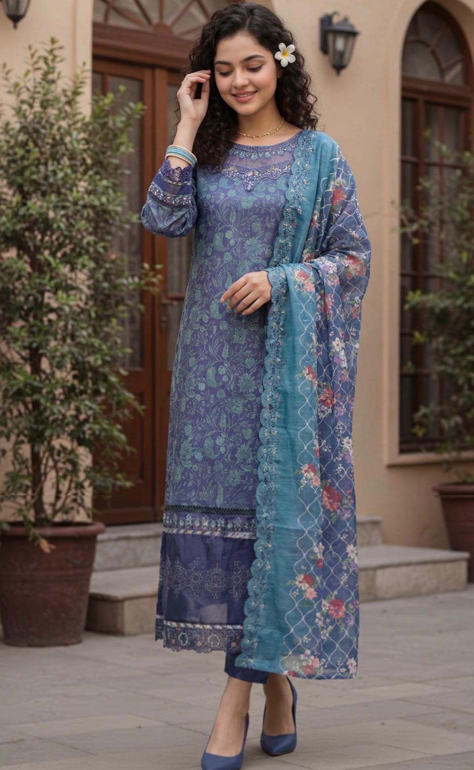 Each set features beautifully stitched fancy digital printed lawn shirts enhanced with subtle embellishments for a graceful look. It is paired with an exclusive voile printed dupatta that adds a soft, airy feel, while the stitched plain cambric trouser ensures comfort and a polished finish.