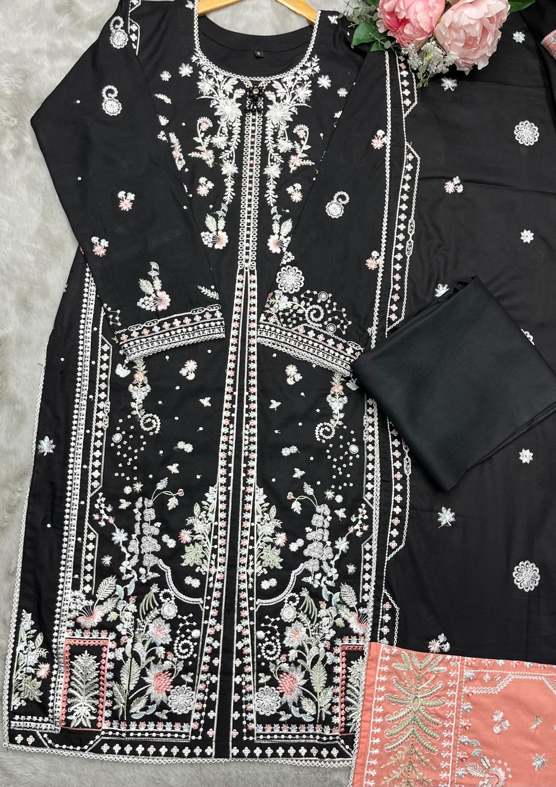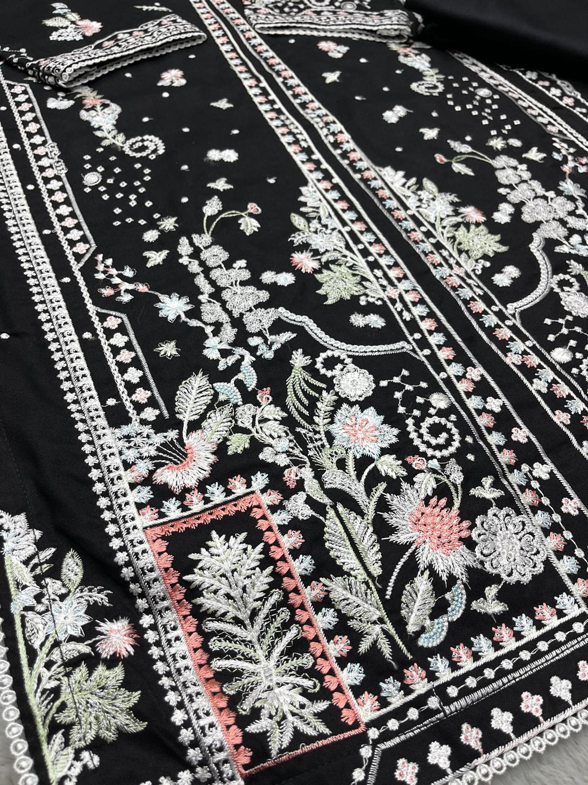 BLACK 3 PC DESIGNER | EMBROIDERED PATCH WORK DHANAK | WITH SHAWL SUIT