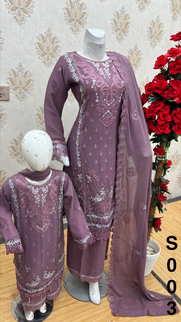 LAILIC - Embroidered Plazoo Chiffon Mother & Daughter Ready to Wear Collection - Perfect for Family