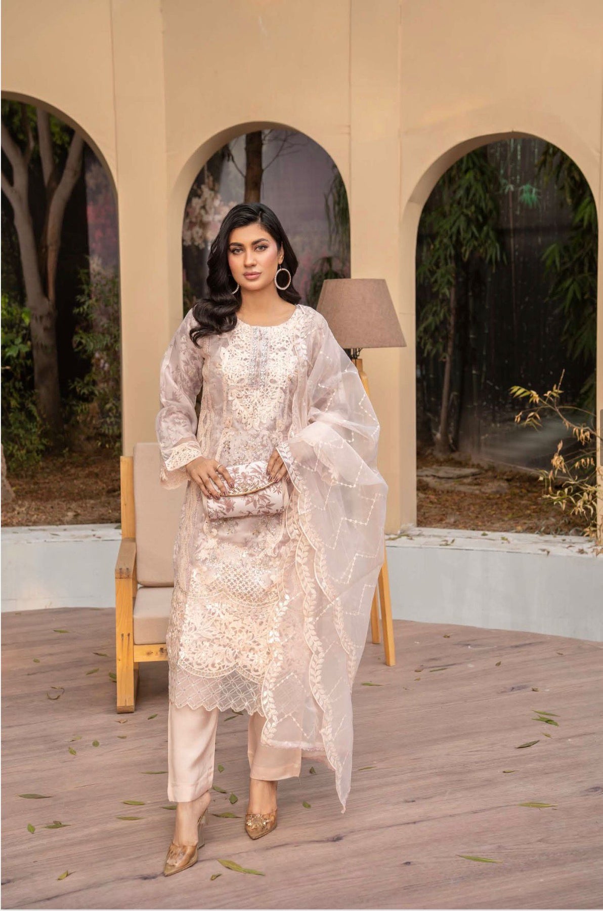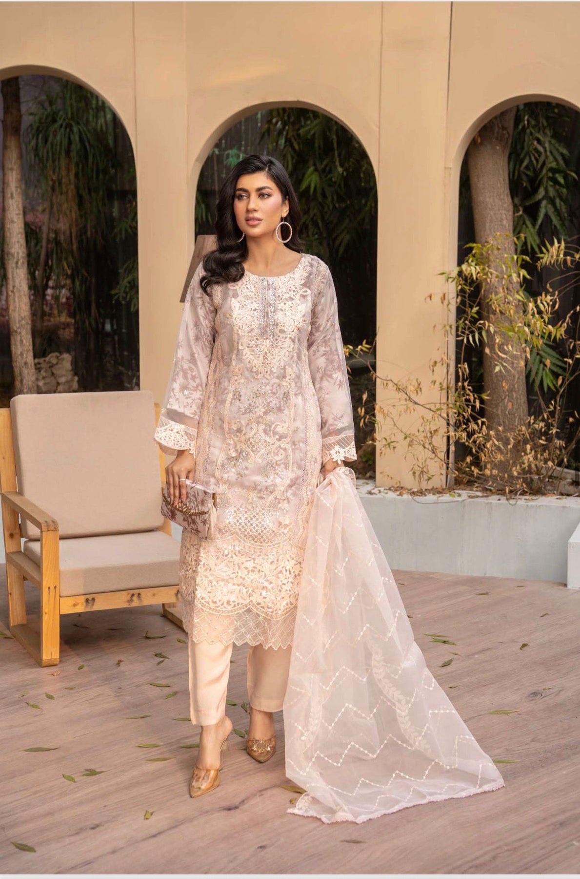 PEACH EMBROIDERED | ORGANZA PAKISTANI READYMADE | WITH EMBROIDERED DUPTTA