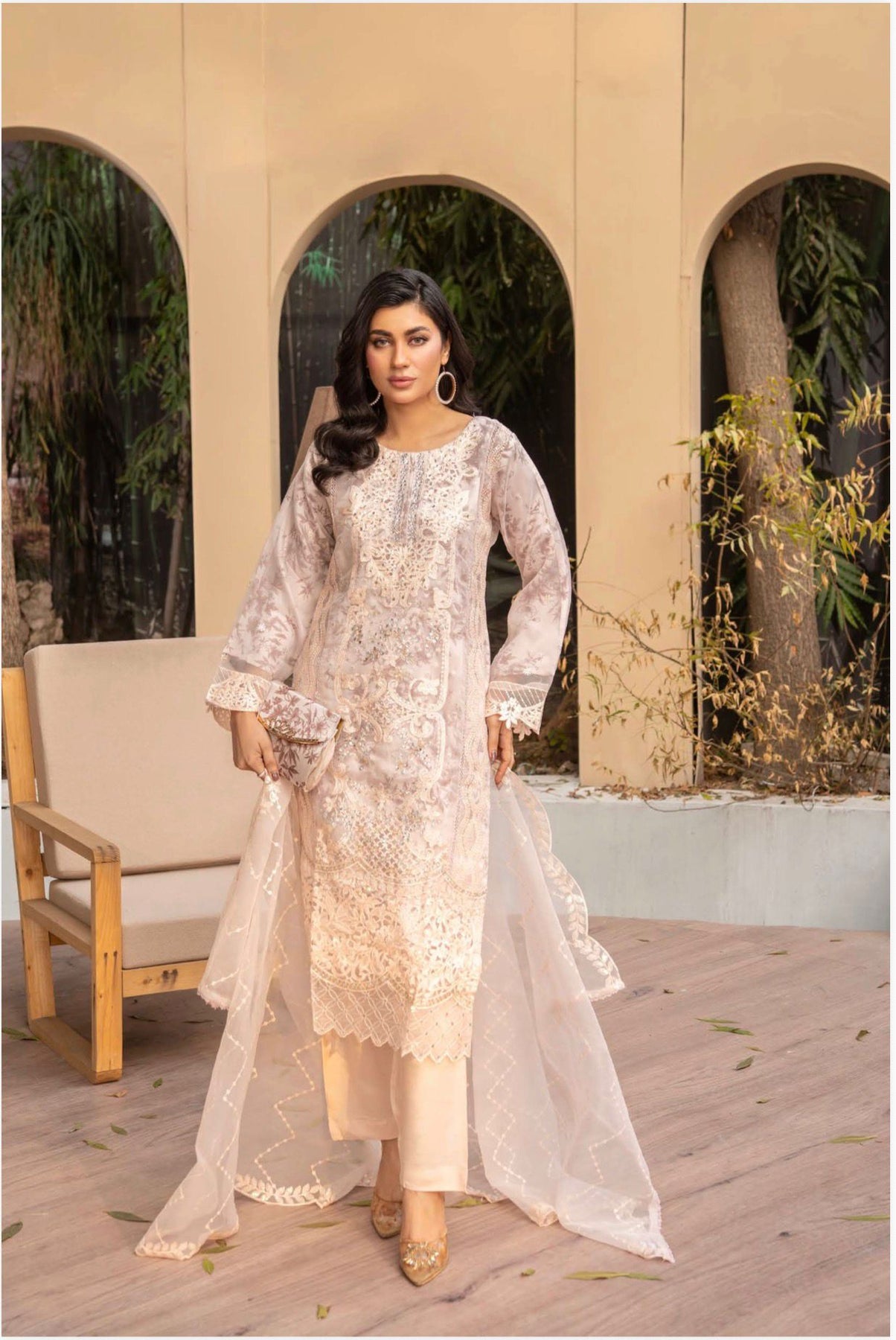 Elevate your wardrobe with this stunning embroidered organza Pakistani readymade ensemble. Crafted from luxurious organza fabric, this piece features intricate embroidery work throughout, complemented by a beautifully embroidered dupatta. Perfect for weddings, celebrations, or special occasions, the rich teal hue adds sophistication and elegance. The readymade design ensures a perfect fit without alterations, making it an effortless choice for those seeking traditional Pakistani fashion with contemporary ease. Ideal for creating a memorable impression at any event.