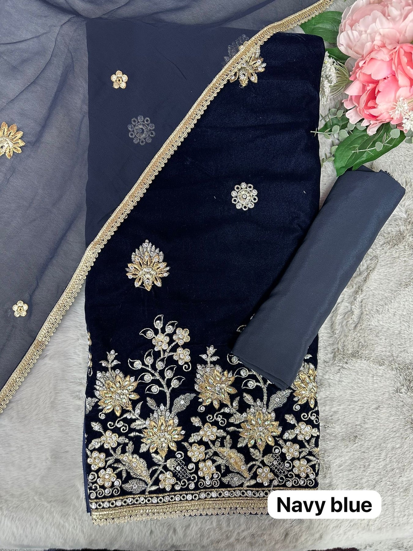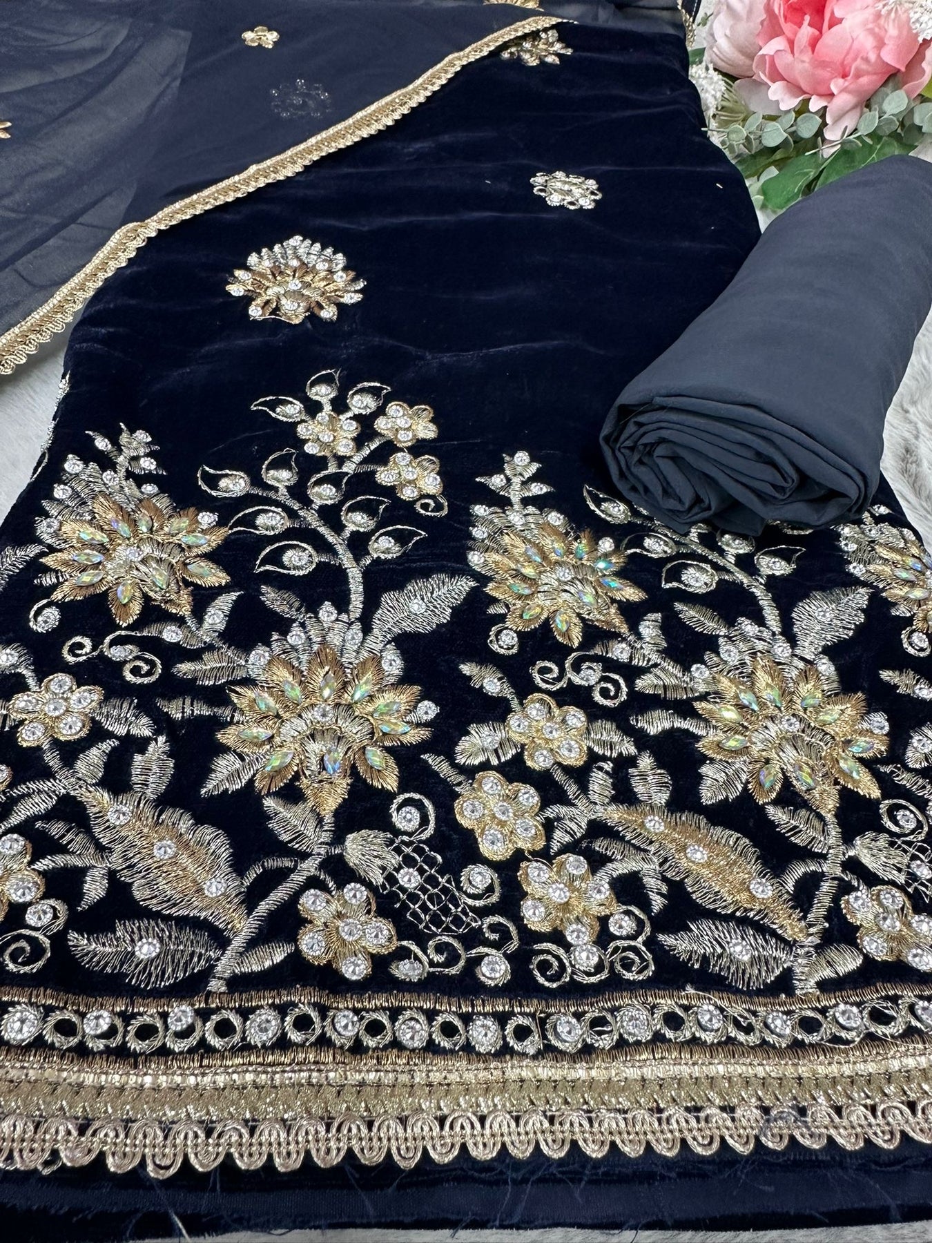 NAVY BLUE Winter | Embroidered Unstitched | Velvet Suit